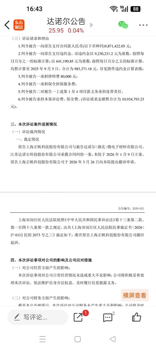 公告 达诺尔:重大诉讼进展公告