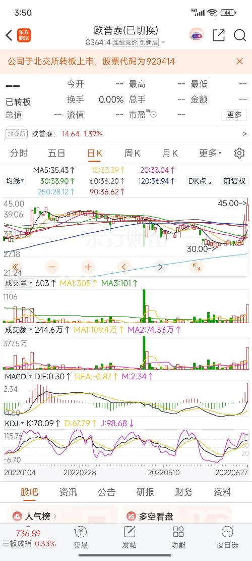 $欧普泰(SZ836414)$欧普泰的代码后四位6414下一个交易日就启用新代码了,今天收盘价14.64有点纪念的意思