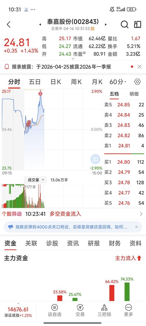 $泰嘉股份(SZ002843)$24.78