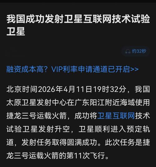 $航天工程(SH603698)$ 北京时间2026年4月11日19时32分,我国太原卫星发射中心在广东阳江附近海域使用捷龙三号运载火箭,成功将卫星互联网技术试验卫星发射升空,卫星顺利进入预定轨道,发射任务取得圆满成功。此次任务是捷龙三号运载火箭的第11次飞行。