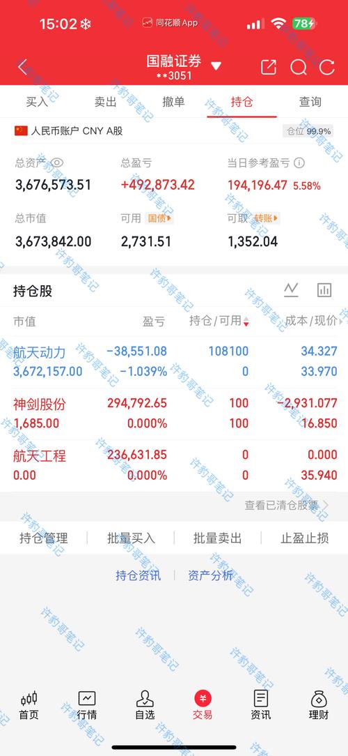 不喜勿喷。 虽然新gao了,但这波行情,我觉得我至少还亏15个点,才对得起这行情。 航天工程下午分批出了,其实航天工程也挺好的,但我去了当时商业航天盘面更强的航天动力。结果后面航天动力就萎靡了。。。反而航天工程还起来了,真是造化弄人啊。郁闷。。。 $航天工程(SH603698)$$航天动力(SH600343)$$神剑股份(SZ002361)$ #炒股日记#...
