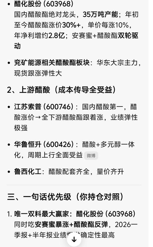 $醋化股份(SH603968)$化工大年,后天开始就是大餐。化工龙头,除了金牛百川,就是醋醋了。担心啥呀