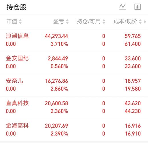 $安奈儿(SZ002875)$今日止盈安奈儿,冲高乏力、量能减弱,落袋为安,等待回调再看机会。 $金安国纪(SZ002636)$今日已卖出金安国纪,高位震荡分歧加大,短期获利了结落袋为安。 本轮涨幅可观,避开冲高回落风险,后续等待企稳再看机会,不恋战。 $金海高科(SH603311)$昨日涨停强势,今日高开冲高回落,资金分歧明显,选择落袋为安。