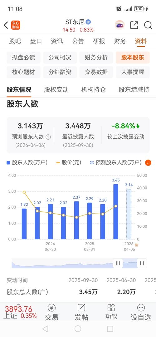 $ST东尼(SH603595)$ 目前股东人数约3.14万,股东人数比一年前增加了不少,增加了不少散户。