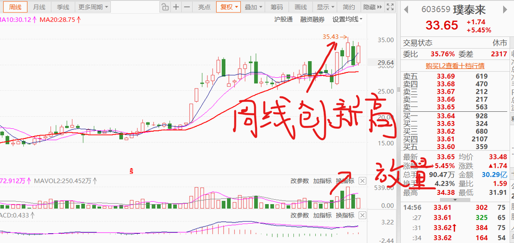 $璞泰来(SH603659)$下周面临前高34-35一带大量套牢盘抛压,如不能带量站上35.43将要回调,大家注意做好仓位控制