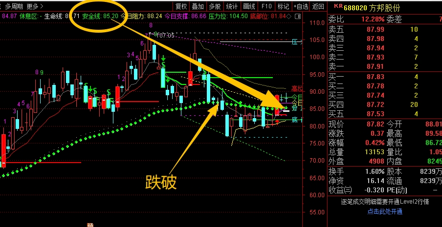 $方邦股份(SH688020)$中期走势略微偏弱了一些,主要是高位回落后,跌破了安全线位置的支撑,但最近两周的反弹走势还不错,再次能拉回安全线85.20位置之上,接下来重点就看安全线区域的得失情况吧,能稳住就没问题,至少能横盘震荡或者是继续反弹走高;但如果有效跌破就要注意再次破位回落的风险了,控制好仓位谨慎应对。