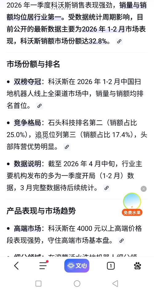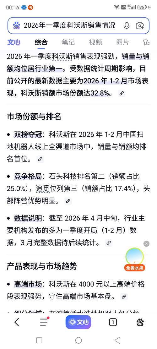 $科沃斯(SH603486)$ $科沃斯(SH603486)$ 根据现有的数据,2026年一季度科沃斯在高端立场的霸权地位基本确立,X11pro,X12pro,T90pro等高端机型销况良好。某些只凭降价抢占份额而缺少创新和眼光的品牌将在内卷中逐渐凋零。在活水滚筒技术方面虽然有些公司也开始布局,但属于在先发者之后亦步亦趋。科沃斯凭借高端产品的销额和擦窗机器人的强劲增长以及添可洗地机的良好表现,一季...