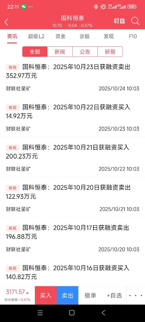 资讯 国科恒泰:融资净偿还352.97万元,融资余额1.39亿元(10-23)