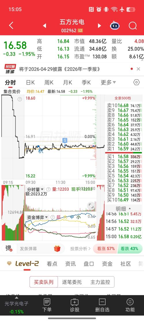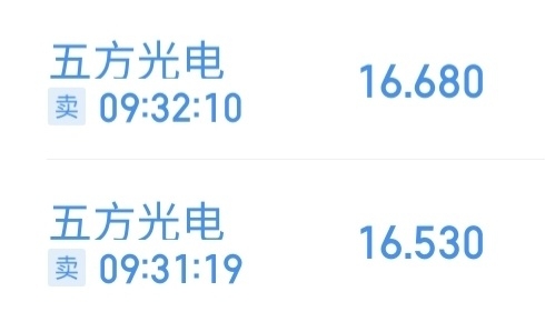 $五方光电(SZ002962)$16.48元低吸入场57000股成交了!继续增持进行时