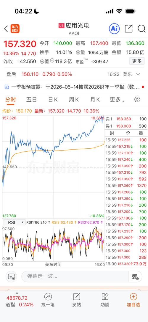 美股今天收盘CPO大涨,AAOI涨10%