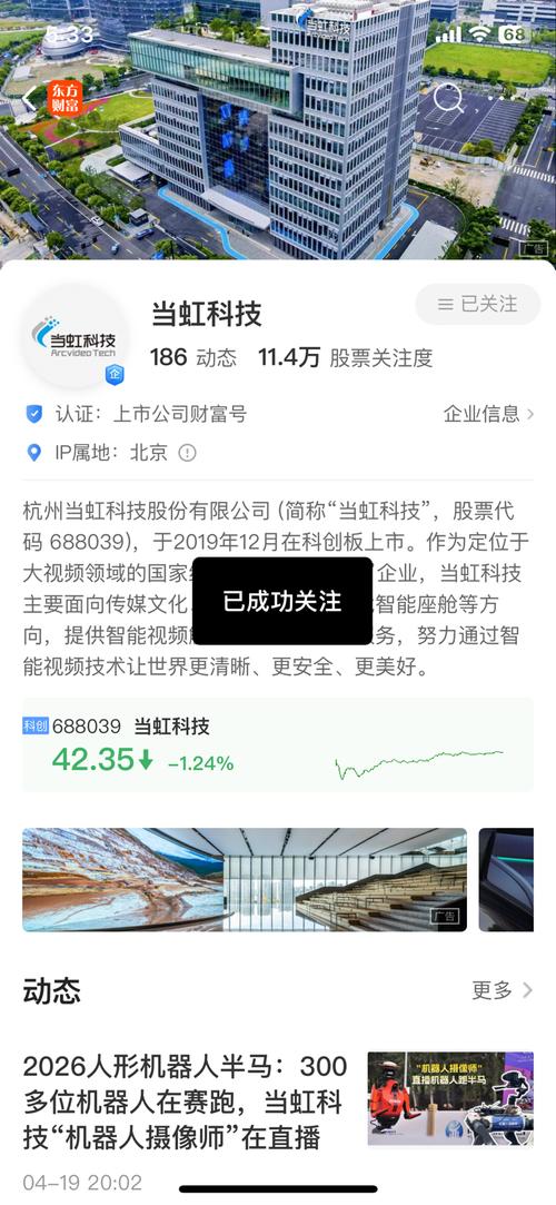 #【有奖】机器人马拉松背后:有哪些最新趋势与机会?# 在科技浪潮奔涌向前的时代,每一次技术的突破都如同璀璨星辰,照亮人类前行的道路。当虹科技(688039),这家自2019年12月登陆科创板的国家级专精特新“小巨人”企业,正以大视频领域为核心,凭借深厚的技术积累与不懈的创新精神,在传媒文化、工业与卫星、车载智能座舱等多个方向绽放光彩,努力通过智能视频技术让世界更清晰、更安全、更美好。 机...
