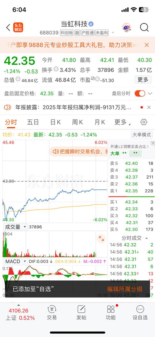 资讯 当虹科技(688039.SH):2025年年报净利润为-9131.17万元