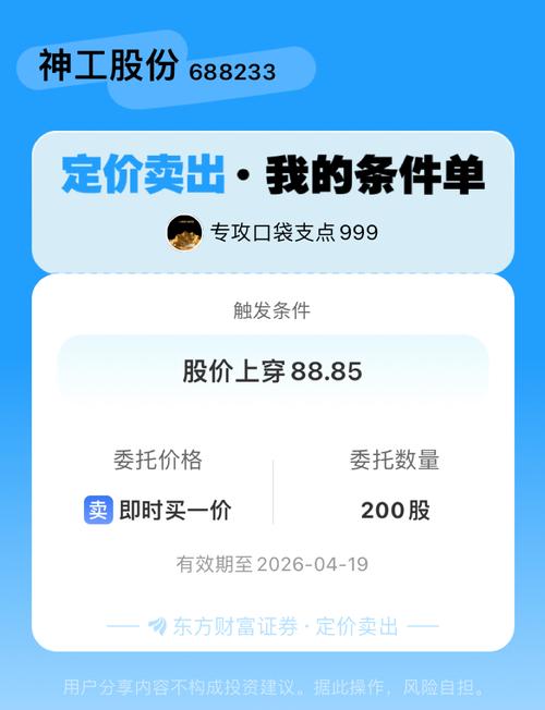 #条件单交流##定价卖出晒单#一位保本出爱好者设置了一个回本定价卖出条件单,接下来就是见证奇迹的时刻~$神工股份(SH688233)$