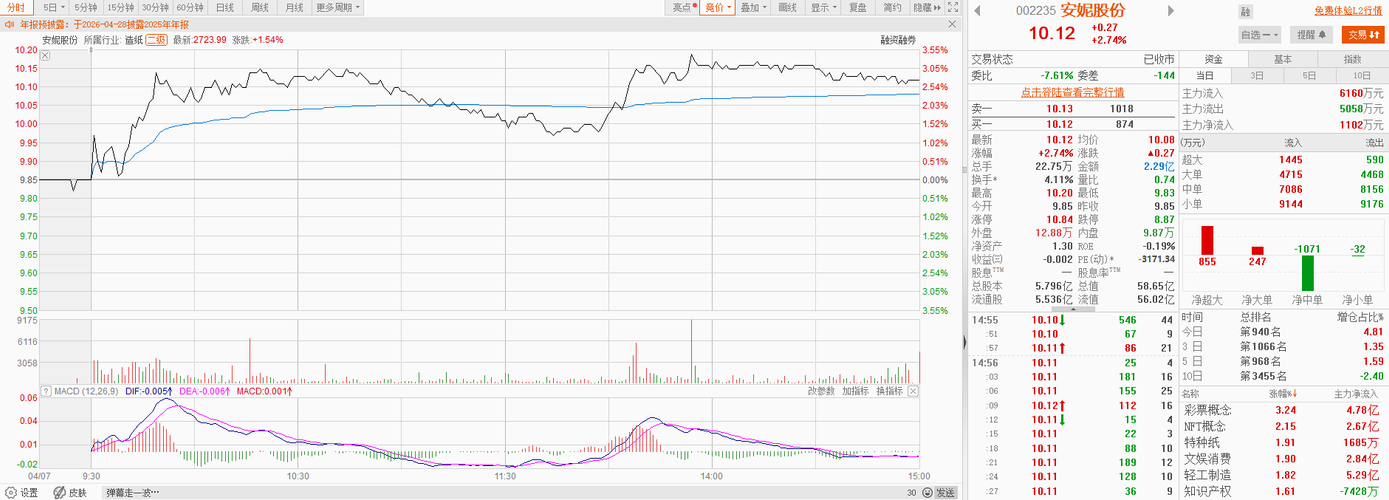 1:安妮股份(涨2.74%,现价10.12) 咱们先看安妮股份,昨天收在10.12,涨了2.74%,是不是舒服多了? 完全符合我前几天跟你们说的剧本!上周五那根中阴线,就是缩量洗盘,把不坚定的筹码洗出去,9.8的支撑位牢不可破。 昨天开盘直接开在9.85,就是我预判的位置,然后一路震荡往上,站稳了10块钱关口。这说明啥?说明支撑有效,反弹确认!抛压已经没了,资金开始回流。 后面怎么走?很简单,10...