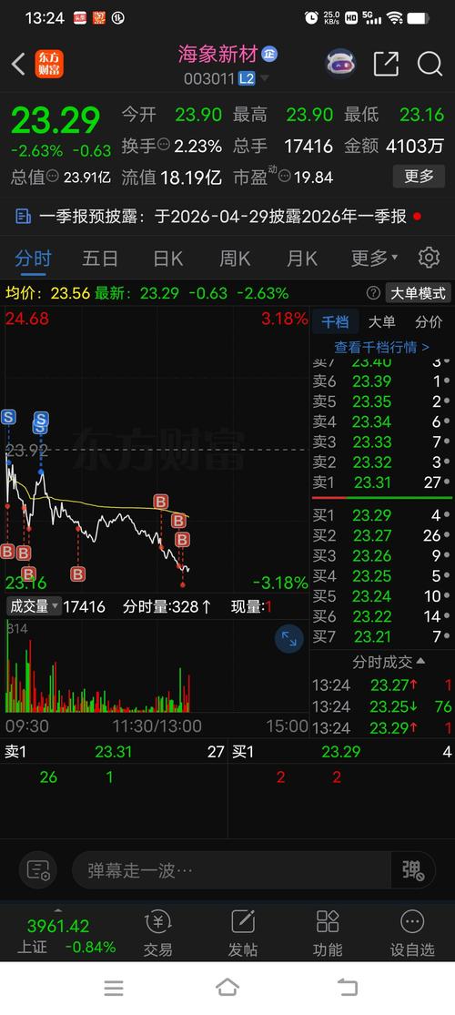 $海象新材(SZ003011)$ 23/1.027=22.4 低吸定价 23.3——22.0元 23.3——23.0——22.7——22.4——22.1