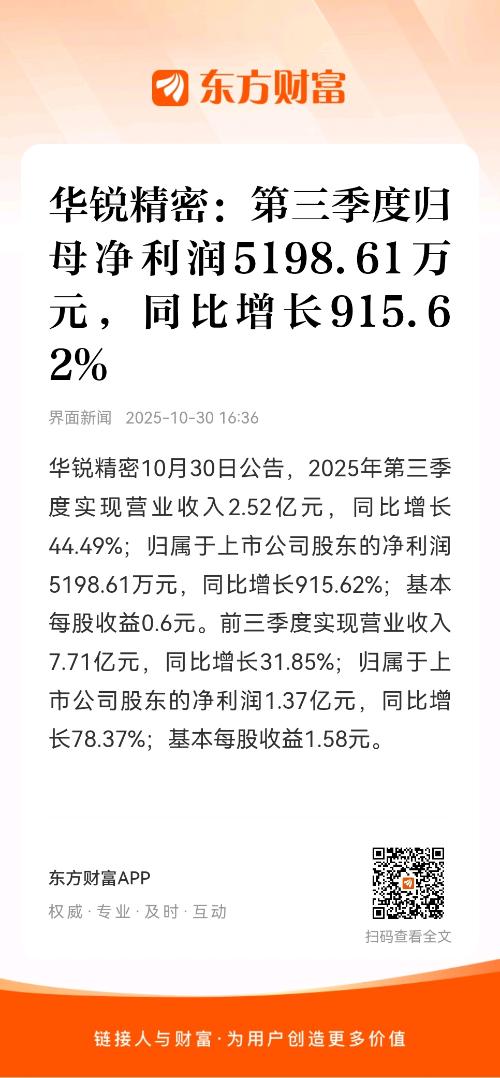 资讯 第三季度扣非净利润同比激增1040.88% 高端刀具龙头华锐精密交出超预期答卷