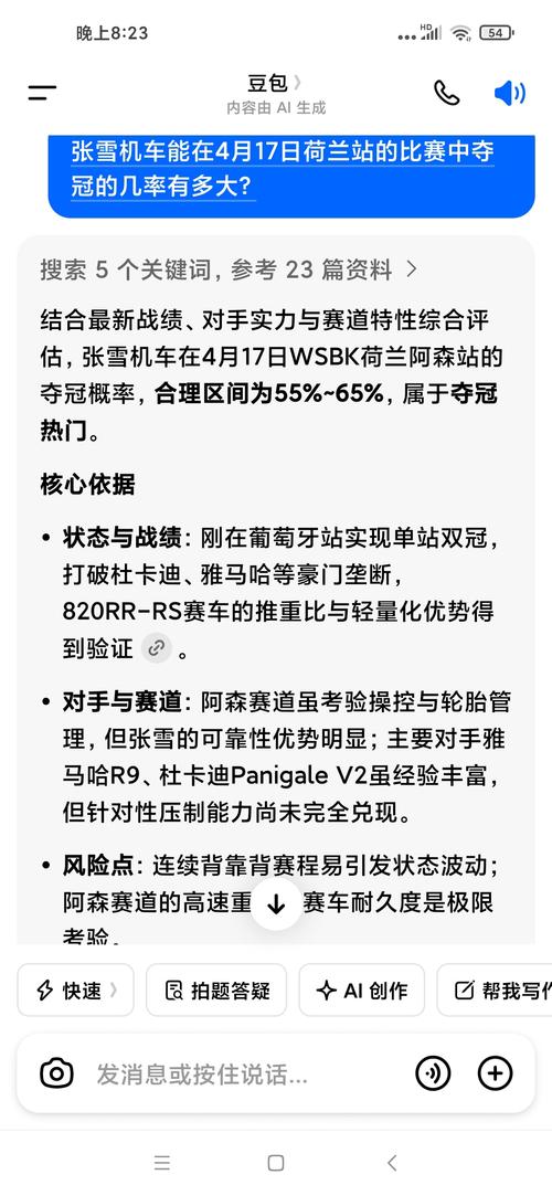 $宏昌科技(SZ301008)$张雪机车在4月17日荷兰站的夺冠概率只有65%,大家怎么看?