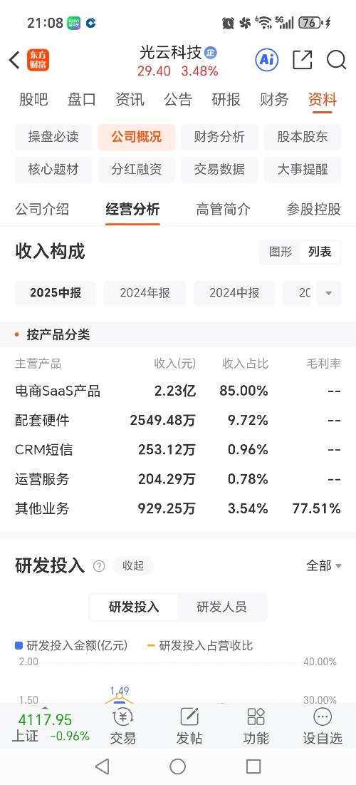 $天亿马(SZ301178)$通过对比$光云科技(SH688365)$与星云开物,本人发现星云开物主要是saas业务,且年利润达到1亿!如果星云开物ipo,其saas业务将直接对标光云科技,目前光云科技,saas业务年营收4亿,利润亏损!而星云开物营收5亿,净利润1亿!而光云科技市值130亿,相当于天亿马白捡一个saas上市公司星云开物!而且星云开物是线上线下saas都做,毛利润远远大于只做线上的...
