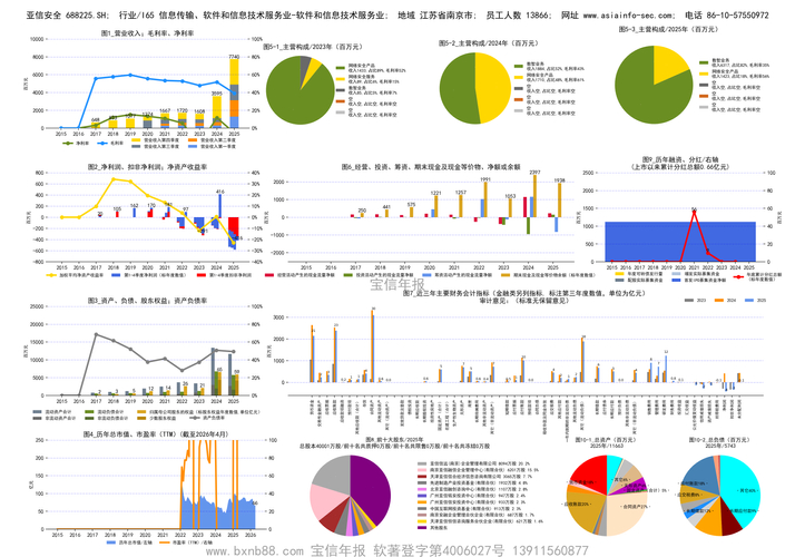 挖贝网4月13日,亚信安全[688225]近日发布2025年年度报告,公司整体实现营业收入77.41亿元,同比增长115.31%,归属于上市公司股东的净利润为-4.46亿元,同比由盈转亏,实现归属于上市公司股东的扣除非经常损益的净利润-3.38亿元,同比亏损增加。 2025年,公司主动优化调整业务结构,放弃低效业务,将全部优质资源集中投入到核心业务的攻坚与升级中,实现资源的高效配置。网络安全业务实...