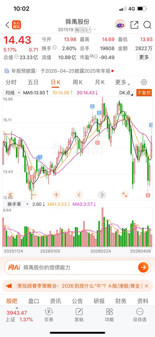 资讯 舜禹股份:融资净买入7.08万元,融资余额3432.53万元