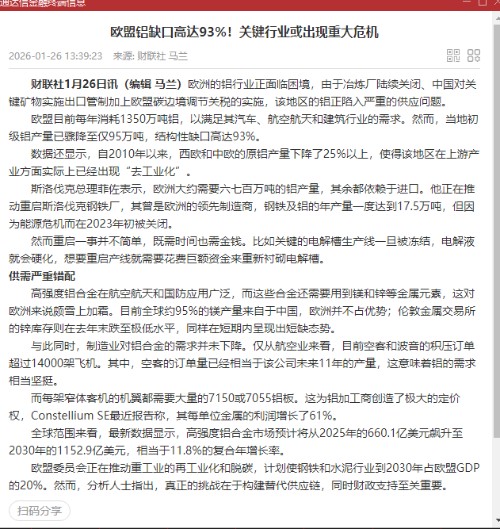 全部 热门 最新评论 最新发帖 全部 全部 个人号 机构号 布鲁大叔123 发表于 01-26 14:24 22次浏览 财联社最新重磅!欧盟铝缺口高达93%,关键行业出现重大危机!!!!!! 分享 评论 赞 djs杜家升1778 发表于 01-18 15:19 37次浏览 沪铝2603合约的后市看涨为主。 逻辑主要基于:宏观流动性宽松预期与资源安全溢价的中长期叙事、电解铝产能存在“天花板”带来的供应刚性支撑,以及海外市场现货紧张对情绪的带动。这些因素构成了价格下方的重要支撑。 操作上,建议回调至23645可考虑多,防守23205,看24360压制,进一步看前高压制,注意风险。 #沪铝# 分享 评论 赞 发帖 APP内打开