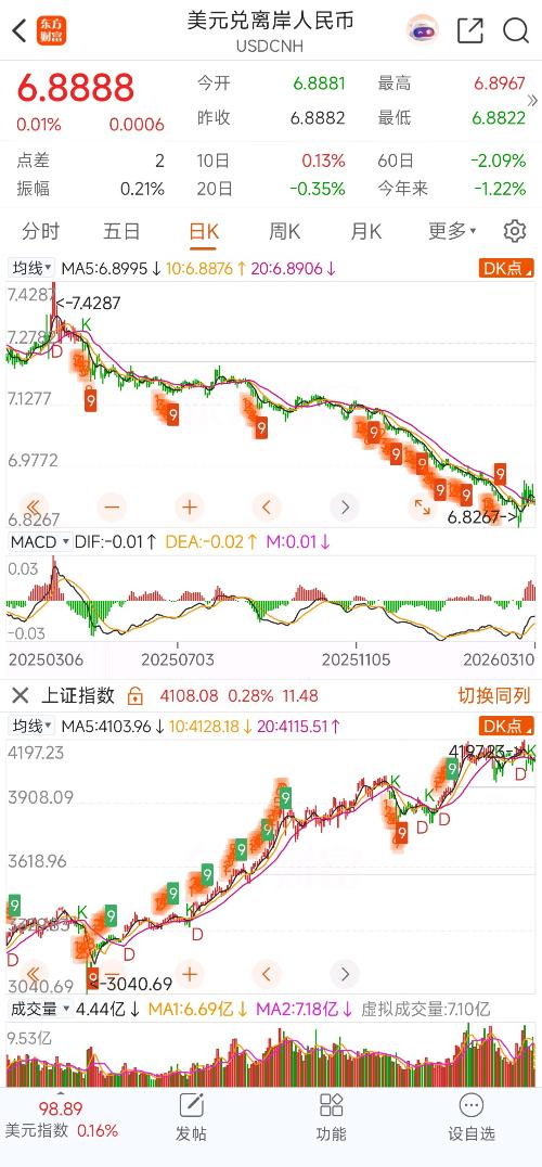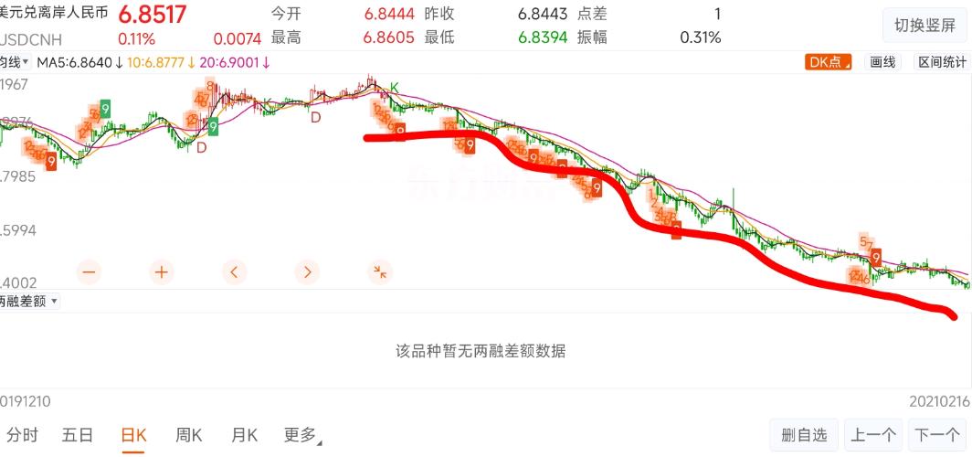 $美元兑离岸人民币(CNYOFFS|USDCNH)$年底的时候才破7,这才短短4个多月,已经升值到6.8了,是不是太快了点