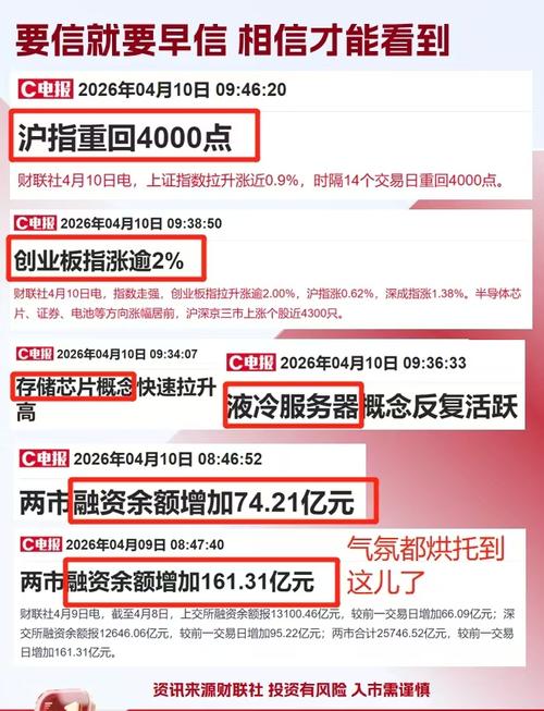 沪指4000点,融资余额百亿增长。热闹归热闹,切记不追高、控仓位,理性对待每一次上涨。