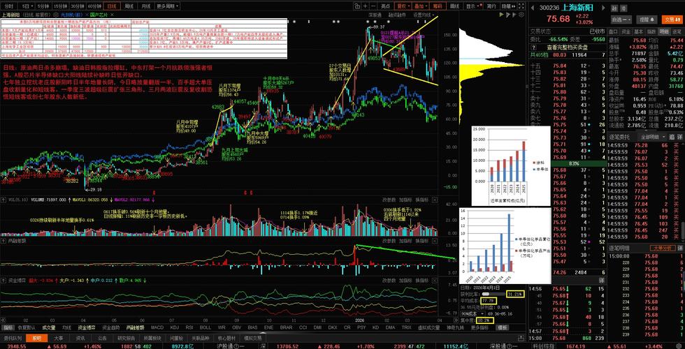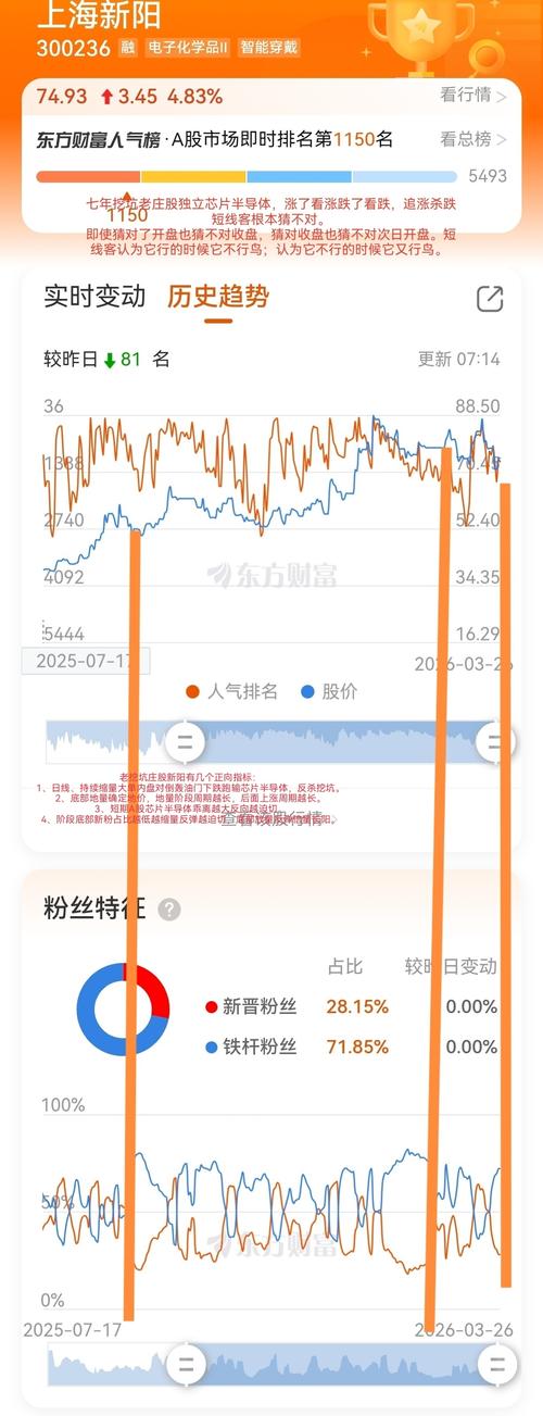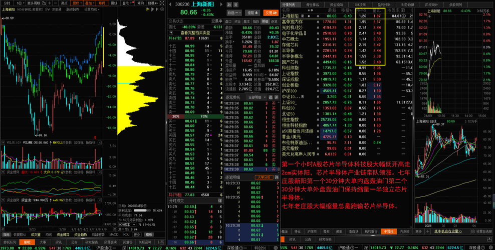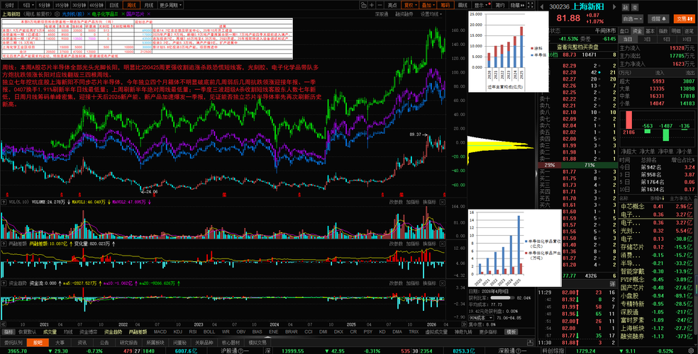 - 周线:本周A股芯片半导体全部光头光脚长阳,明显比250425周更强收割追涨杀跌恐慌短线客,光刻胶、电子化学品带队多方炮抗跌领涨长阳对应线翻版三四根周线。 独立七年挖坑庄股上海新阳不同步芯片半导体,今年独立四个月箱体不明显破底前几周弱后几周抗跌领涨迎接年报、一季报。0407换手1.91%刷新半年日线最低量;上周刷新半年绝对周线最低量;一季度三波超级A杀收割短线客股东人数七年新低,日周月线筹码单峰密集,迎接十天后2026新产能、新产品加速爆发一季报,见证能否独立芯片半导体率先再次刷新历史新高。