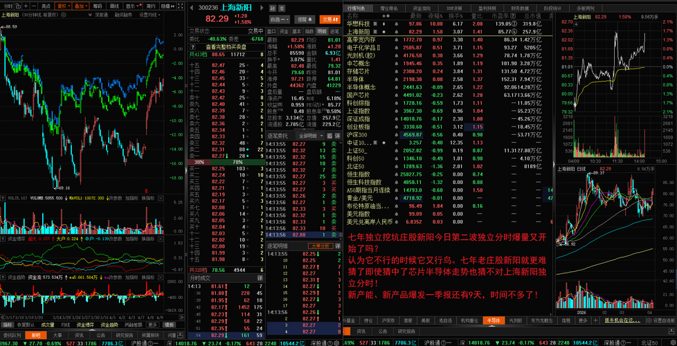 $电子化学品Ⅱ(BK1039)$$光刻机(胶)(BK0884)$$上海新阳(SZ300236)$ 进入尾盘一刻钟大局已定,今日芯片半导体大幅低开高走1+cm实体阳墓碑线仙人指路。 七年独立挖坑庄股分时三波上捅下挖坑维持倍量洗短线客迎接几天后新产能、新产品加速爆发一季报。短线客即使猜对了开盘也猜不对收盘,猜对收盘也猜不对次日开盘。七年老庄股新阳即使猜中了芯片半导体走势也猜不对上海新阳独立分时!