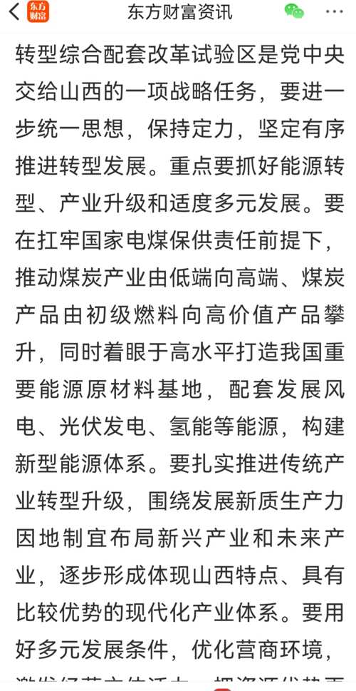 $山西板块(BK0167)$$兰花科创(SH600123)$$山西焦煤(SZ000983)$综合政策与企业战略分析:新《矿产资源法》框架下山西焦煤与兰花科创的转型机遇——基于……山西考察最新指示的深度解读 一、顶层指引:……考察为山西转型锚定战略方向 7月8日上午,……在山西考察时,对山西推进国家资源型经济转型综合配套改革试验区建设提出明确要求,为山西高质量发展注入强劲动力。这一指示与即将实施的《...