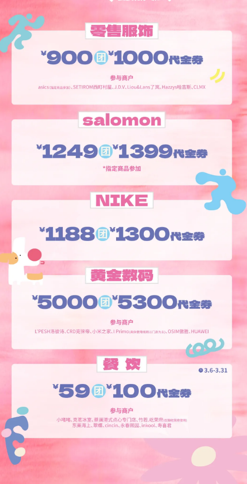 长宁来福士樱花季也太会了! 59团100餐饮券闭眼冲, 蔡澜、克茗冰室都能用,半马选手还能薅38折大餐! NIKE、salomon服饰券直省,黄金数码也有团券, 女神节逛吃买一条龙,运动局还能边玩边薅, 这波福利错过真的拍大腿,友友们速冲! #三八节#长宁来福士#逛街好去处#逛街攻略#周末去哪儿
