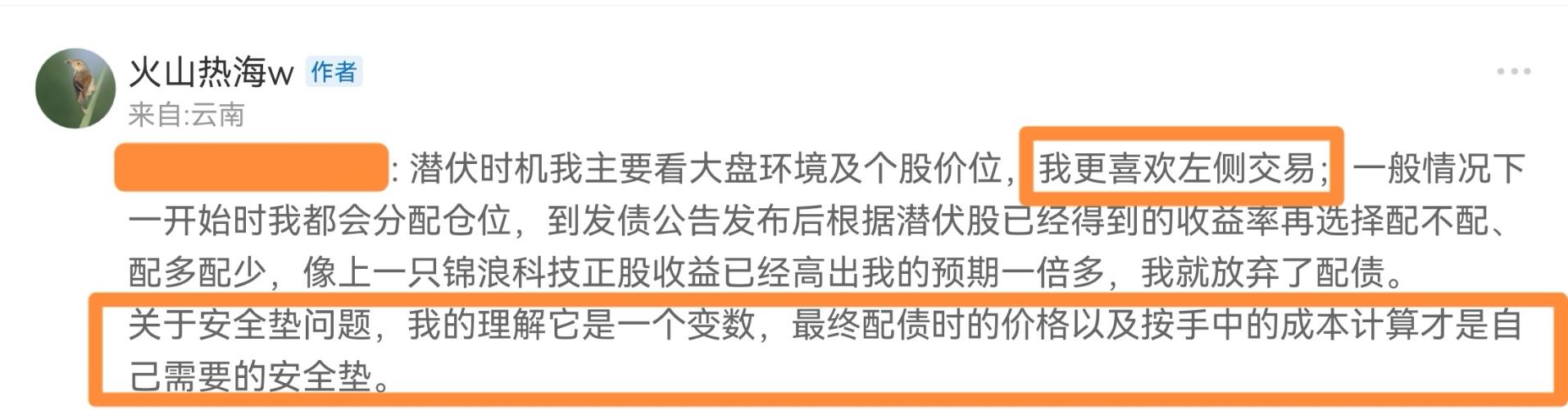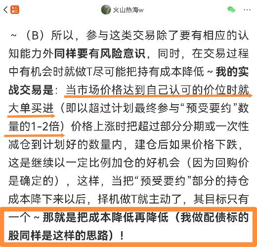 【补白~我有一个账户专做配债】2019年我有两个账户,那一年开始我用一个账户专做可转债——潜伏配债,无潜伏标的股而有资金剩余时也只是做做“要约收购/回购”股或国债逆回购,即便北交所成立后也没有参与配新(那时的北交所不像现在申购配售这样“卷”)就是为了专注配债,妥妥的一个配债账户,所以我称其为“转债专户”;另一个账户专做新三板、纳德日ETF及港股,资金空闲时也会参与要约股或北交所新股申购配售,机会降...