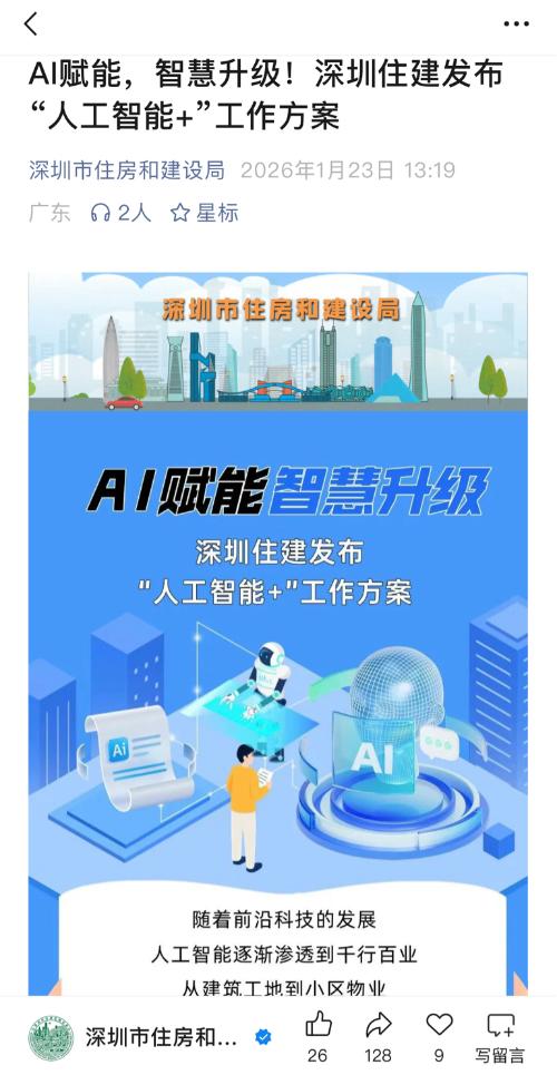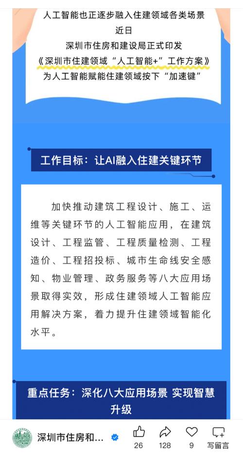$安居宝(SZ300155)$AI赋能,智慧升级!深圳住建发布“人工智能+”工作方案 $智慧城市(BK0628)$#深圳综改试点重磅升级#$深圳特区(BK0549)$