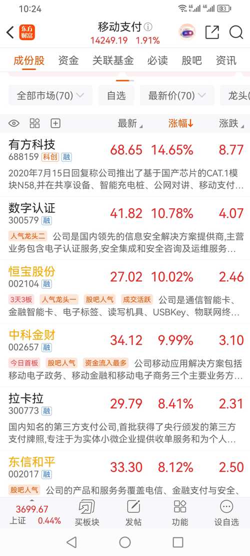 $移动支付(BK0556)$ $恒宝股份(SZ002104)$ $中科金财(SZ002657)$ 军哥,科技金融。#强势机会#