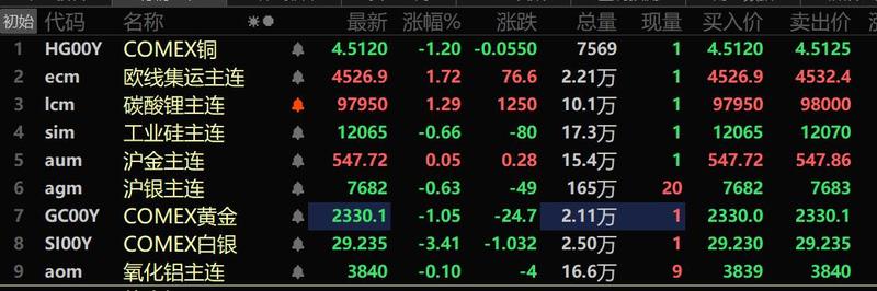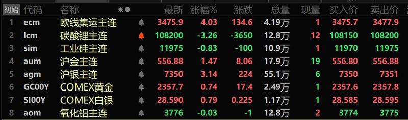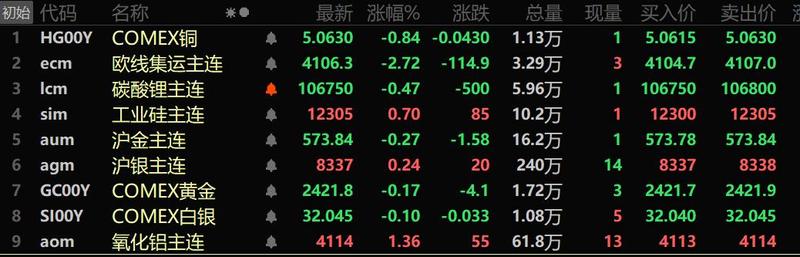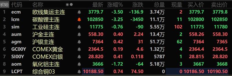 美元三连跌 基本金属多飘红 沪锡、沪铅涨超2% 碳酸锂跌3.25%