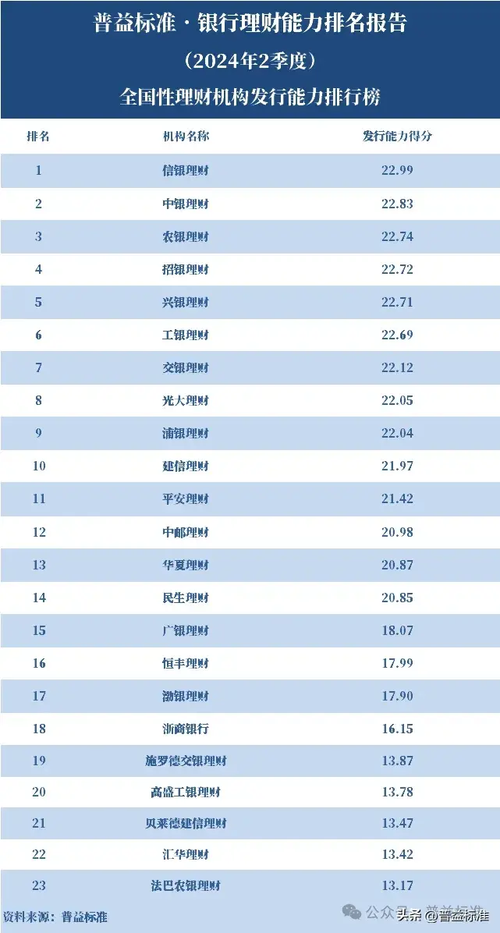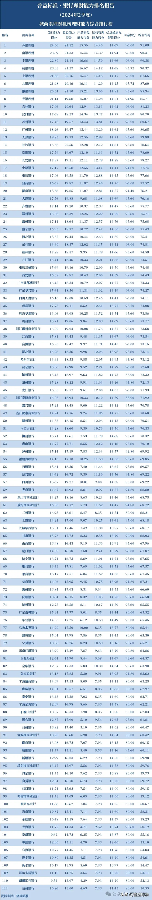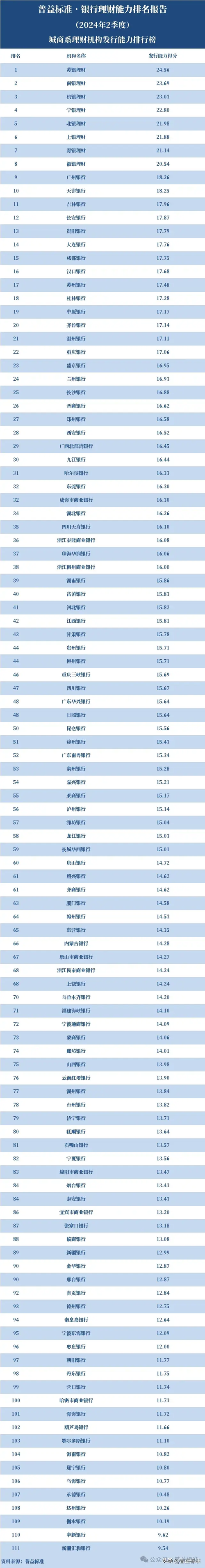 独家丨全国262家银行理财能力排行榜(2024年2季度)