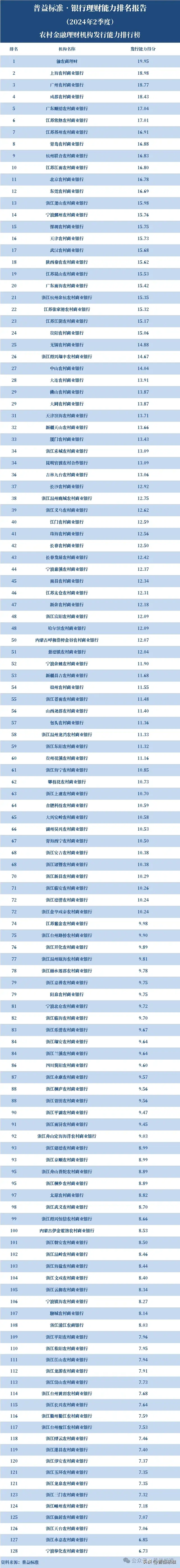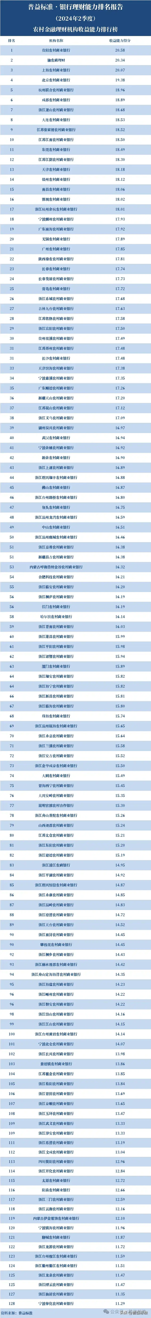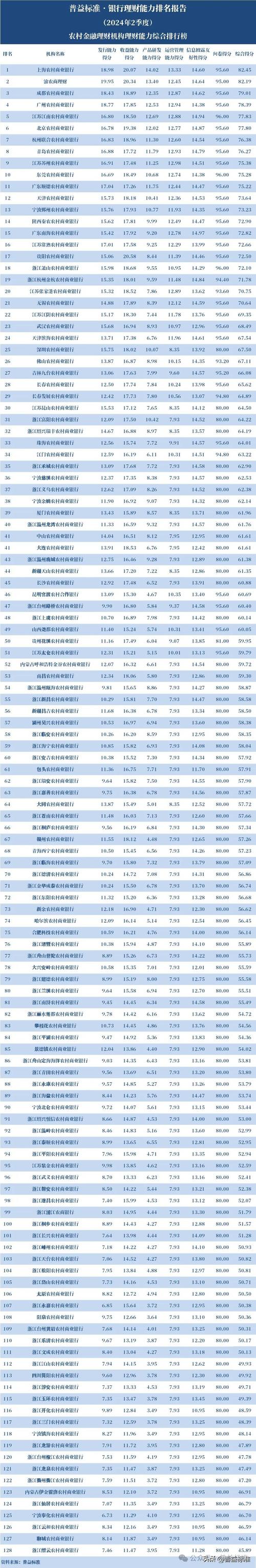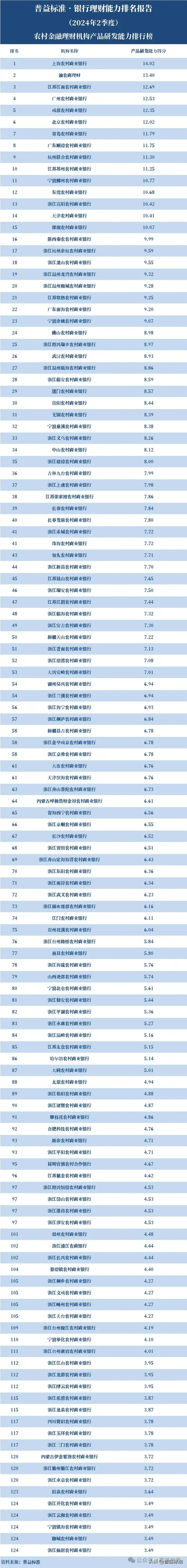 128家农商行理财能力排名来了!