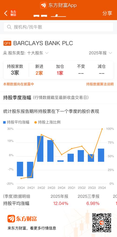 $亚联发展(SZ002316)$$智能电网(BK0581)$ 1.基本身份 BARCLAYSBANKPLC是英国巴克莱银行,属于QFII(合格境外机构投资者),是全球历史最悠久的商业银行之一,也是重要的跨境机构投资者。 2.对亚联发展(002316)的持股情况 •持股状态:2025年年报中新进成为第8大流通股东,持股数量193.67万股,持股比例0.49%,持股市值约916.04万元。 •信号意义...