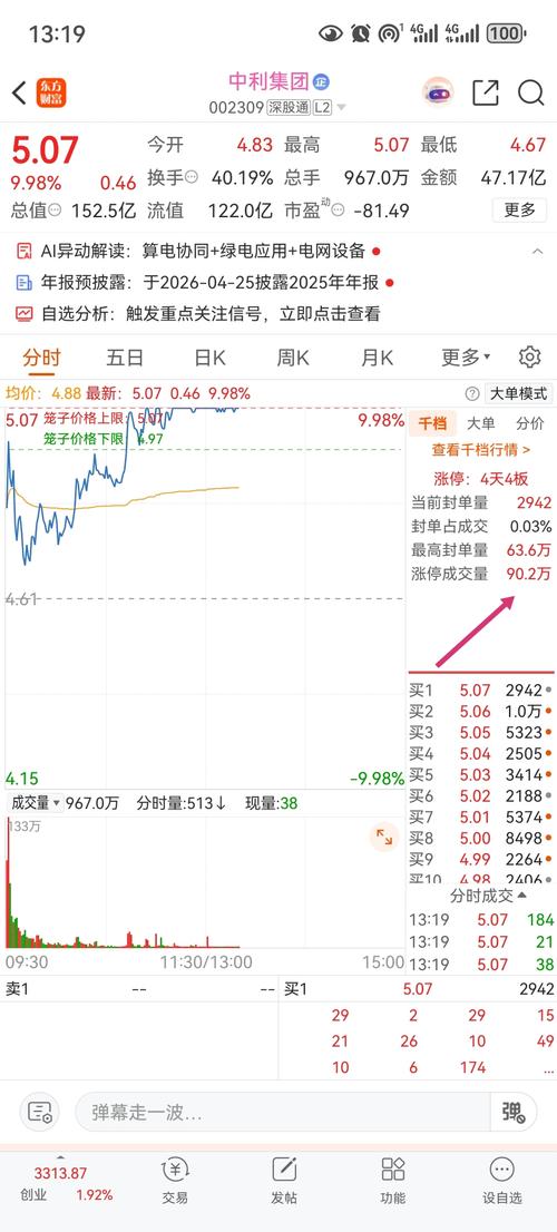 中利集团涨停板上成交很多且40%的换手率,该走的都走了,接下来盘子会很轻,明天之后是上天还是入地,全看今天进入的资金想法。 $算力概念(BK1134)$ $绿色电力(BK1024)$ $智能电网(BK0581)$ #国家数据局刘烈宏:大力推进算电协同工程# #国家电网加速智能电网建设,投资机会来了#