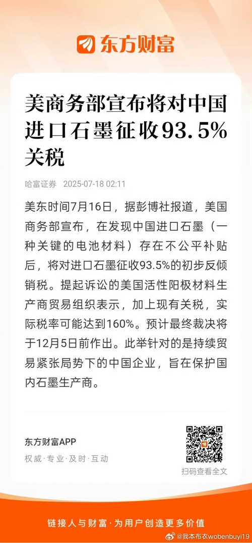 $大富科技(SZ300134)$$石墨烯(BI0617)$按照老美的说法,对中国石墨加征的25%关税,将被推迟至2026年才开始生效。利好大富科技旗下的“内蒙古大盛石墨”!