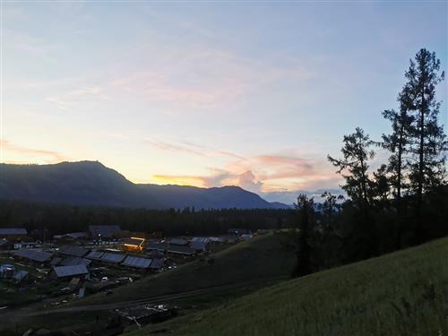 衣襟上别好了晚霞余晖送我牵匹老马~正路过