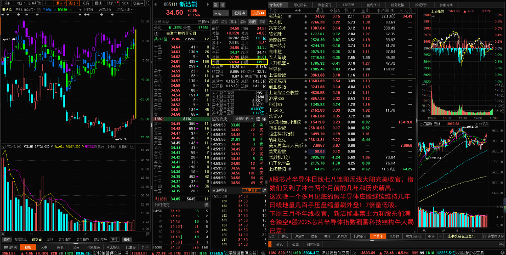 $无人驾驶(BK0802)$$充电桩(BK0700)$$碳化硅(BK0977)$ A股芯片半导体日线七八连阳周线大阳完美收官,指数们又到了冲击两个月前的几年和历史新高。 这次晚一个多月见底的假半导体庄股继续维持几年日线地量几百手压盘缩量刷外盘1.7倍量低吸。 下周三月季年线收官,新洁能韭菜主力和股东们满仓踏空A股2025芯片半导体指数翻番科技结构牛大局已定!