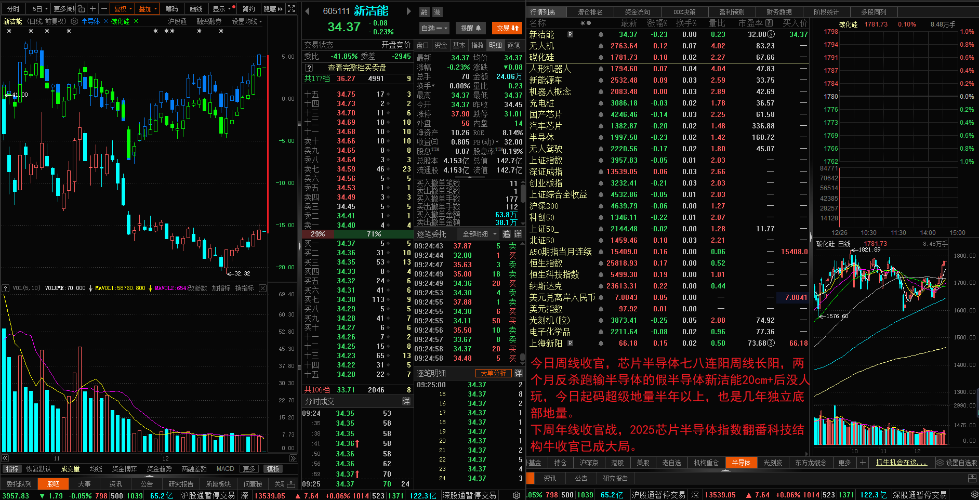 $无人驾驶(BK0802)$$充电桩(BK0700)$$碳化硅(BK0977)$ A股芯片半导体今日周线完美长阳收官日线七八连阳。 假半导体新洁能晚见底一个多月两个月跑输半导体相关指数集体达到20+cm,见底八天每天大单压盘小单刷外盘持续地量收割2025A股最悲催的半导体韭菜。2025半导体带队指数翻番结构科技牛完美躲过。