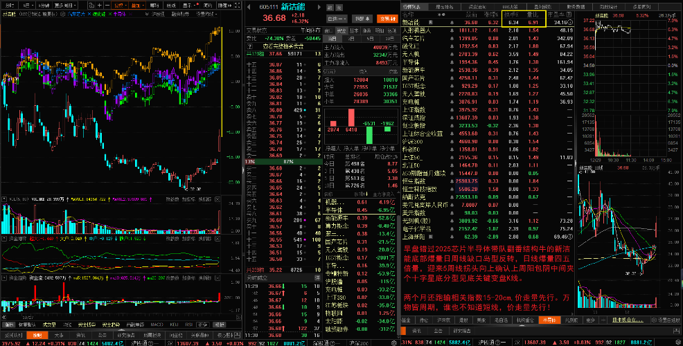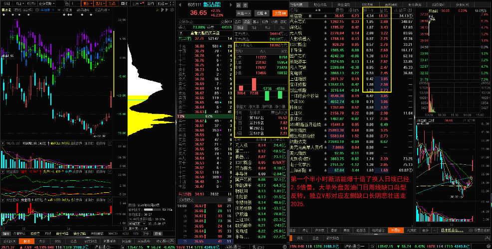 $无人驾驶(BK0802)$$充电桩(BK0700)$$碳化硅(BK0977)$ 第一个半小时新洁能爆十倍了换人日线已经2.5倍量,大单外盘轰油门日周线缺口岛型反转,独立V形对应左侧缺口长阴悲壮送走2025.