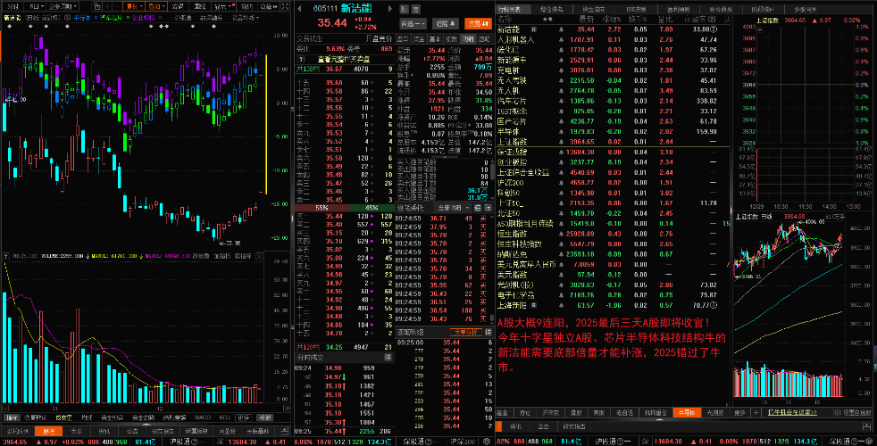 $无人驾驶(BK0802)$$充电桩(BK0700)$$碳化硅(BK0977)$ A股大概9连阳,2025最后三天A股即将收官! 今年十字星独立A股、芯片半导体科技结构牛的新洁能需要底部倍量才能补涨,2025错过了牛市。