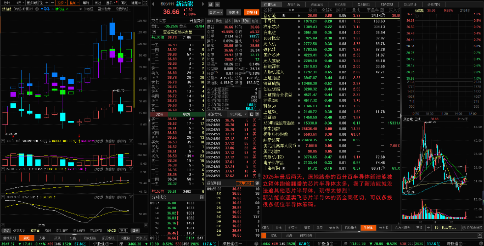 $无人驾驶(BK0802)$$充电桩(BK0700)$$碳化硅(BK0977)$ 2025年最后两天,原地踏步的百分百半导体新洁能独立箱体跑输翻番的芯片半导体太多,卖了新洁能就没法追其他芯片半导体,玩得太惨烈! 新洁能欢迎卖飞芯片半导体的资金高低切,可以多换很多低位半导体筹码。