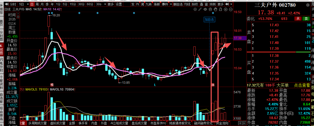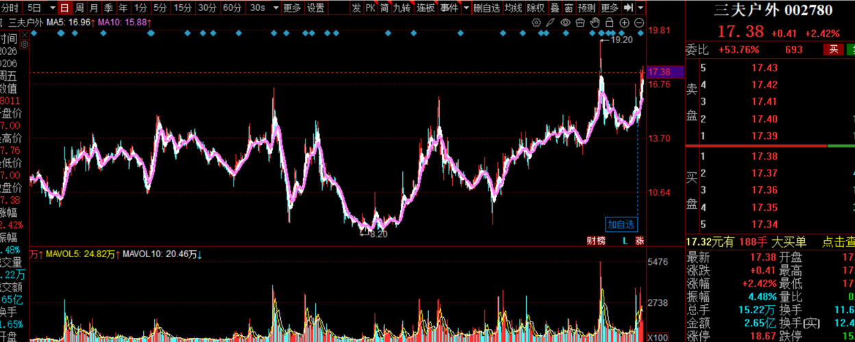 直接上分析 1、技术面: 当下位置:最近三年最低价格是8.2元,最新价格17.38元,也就是2025年轰轰烈烈的牛市只是翻倍,谈不上大涨,所以没有大涨后大跌的那种风险。 最近走势: 1)从这个图可以看出,最近三个月出过三次涨停起步的小趋势,重点1月23日涨停后阴跌回调,套牢一部分人,割肉一部分人,在1月31日公布业绩后,2月2日直接高开涨停出现打开和回封,且成交量放量,这里说明吃掉所有抛压强势大涨...