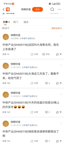 中体这只股票我做了几年,几次波段冬奥会的那一波15块多,跌到6块钱,也是一大群人不懂得止损,到了六块多,反弹到七八块了就到处吹牛,搞各种消息。世界杯那一波也是明显的头部平台也还到处在喊什么彩票销量大增,业绩大增,结果年报1000多万。亚运会那一波,我相信里面还有很多套牢盘,应该深知那一波有很多人喊什么182015年报几个亿的利润。今天只剩下八块多了,跌到七块多,他们都不懂得中间9块,10块止损...