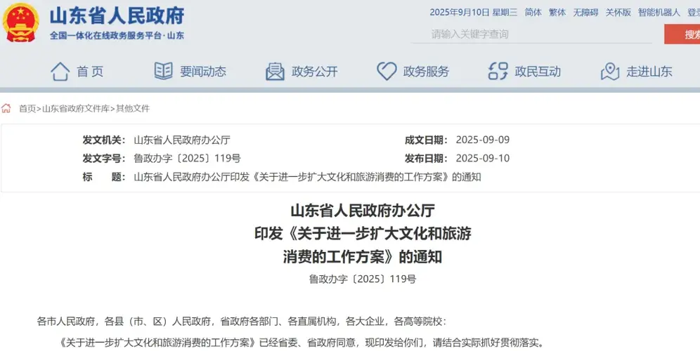 9月10日,山东省人民政府办公厅印发《关于进一步扩大文化和旅游消费的工作方案》。 《工作方案》提出,繁荣“夜间文旅”场景,创新“数字赋能”场景,拓展“场馆+”复合模式。 深挖本地非遗、老字号等特色资源,打造差异化场景。支持现有100个省级及以上夜间文旅消费集聚区品质提升,打造“小而美”的精品演艺、沉浸式体验等项目。 加快打造一批富有地方文化特色的数字化文旅综合体项目。加快推进元宇宙、数字人、虚拟现...