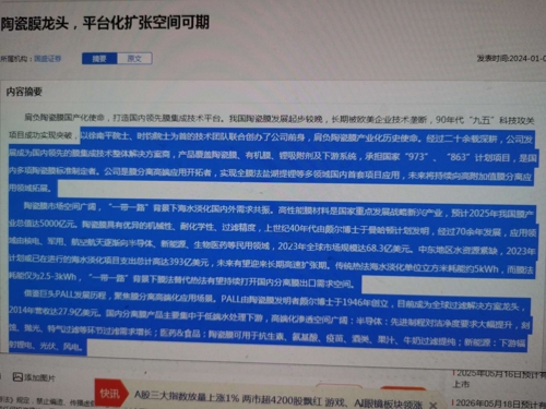 61- 难怪大股东买买买啊全球首套造纸制浆废水零排放膜集成系统成功应用、全球首套万吨级盐湖全膜法提锂项目成功应用等公司科技创新成果。 经历二十多年的发展,久吾高科已成为陶瓷膜领域龙头企业。久吾高科董事长党建兵日前在接受中国证券报记者专访时表示:“长期以来久吾高科坚持科技驱动,在多个业务领域形成技术‘护城河’。未来将继续以科技创新为引擎,创新研发新产品、新工艺,打造新的增长曲线,助力公司由‘小而美’向规模化转身。” 本报记者张军 持续强化竞争力 久吾高科以陶瓷膜、有机膜、锂吸附剂等分离材料为核心,打造膜集成技术整体解决方案,形成新能源服务、工业流体分离、工业废水处理、工业废石膏资源化利用四大业务。 在“双碳”战略驱动下,近年来国内新能源产业发展迅猛。得益于在盐湖提锂领域的技术优势,久吾高科产品销量大增,新能源服务一跃成为2023年同比增速最快的业务板块。 久吾高科计划进一步强化新能源服务业务。公告披露,公司拟定增募资不超2.44亿元,用于班戈错盐湖年产2000吨氯化锂中试生产线BOT项目。久吾高科表示,公司前期已完成班戈错盐湖卤水资源小试试验,并成功找到合适的工艺技术路线。 目前,国内盐湖提锂主流工艺路线采用的是“吸附+膜”法。其中,吸附法的核心是锂吸附剂材料。吸附剂分为铝系吸附剂、钛系吸附剂和锰系吸附剂。当前,国内开发较多的是青海地区氯化物体系卤水盐湖,多采用铝系吸附剂。而西藏地区的盐湖多为碳酸型碱性卤水,针对西藏地区的卤水特质和环保政策,久吾高科自主研发出适合碱性盐湖的钛系吸附剂。 “公司研发的锂吸附剂性能有很强的竞争力。”党建兵向记者介绍,吸附剂的性能评价指标有三个。首先是吸附效率。其次是选择性,在盐湖提锂过程中吸附的锂离子占比越高说明选择性越好。最后是溶损率,溶损率越低说明吸附剂耐用性能越好。 久吾高科表示,班戈错项目旨在推进公司钛系吸附工艺在西藏地区盐湖产业化应用。记者了解到,班戈错盐湖资源方西藏中鑫后期拟开展48000吨/年的粗品氯化锂项目建设。本次募投项目的运行情况对后期推进新产线